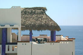 These are two of Eglantina's roof-top palapas, a favorite gathering place for sunsets.